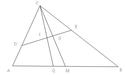 Cho tam giác $ABC$ có tính chất. Đường thẳng qua tâm đường tròn nội tiếp $I$ và trọng tâm $G$ thì vuông góc với phân giác trong của góc $C$. CMR khi đó ta có :