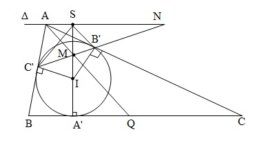 Đặt $N = B'C' \cap \Delta ,S = IA' \cap \Delta ,Q = AM \cap BC$