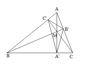 Vậy $S\left( {MB'C'} \right) = \frac{{MB'}}{{MB}}.\frac{{MC'}}{{MC}}.\frac{{MA'}}{{{\rm{AA'}}}}S\left( {ABC} \right)$