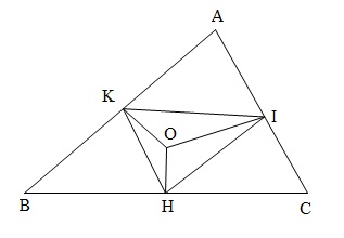 Mặt khác, $\frac{a}{2}.OH + \frac{b}{2}.OI + \frac{c}{2}.OK$