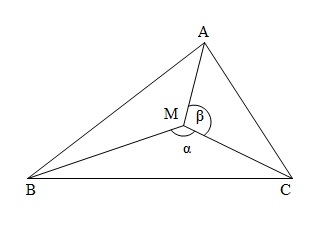 a) đặt $\alpha = \widehat {BMC};\beta = \widehat {CMA};\gamma = \widehat {AMB} $