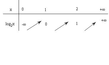 1 Hàm số $y = {\log _2}x$ đồng biến trong khoảng $\left( {0,\, + \infty } \right)$. Bảng biến