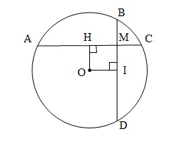 Qua điểm $M$ nằm trong đường tròn $\left( {O;R} \right)$ kẻ hai dây $AC, BD$ vuông góc với nhau. Chứng minh rằng :