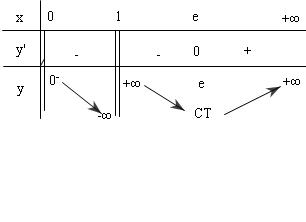 ${y^ / } = \frac{{\ln x - 1}}{{{{\ln }^2}x}},\,\,\,\,\,{y^ / } = 0\,\,\,\,\, \Leftrightarrow