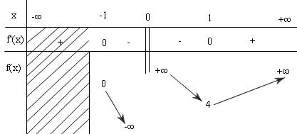 Xét hàm số $f(x)=\frac{x^2+2x+1}{x} $ với $-1<x\neq 0$ ta có $f^/(x)=\frac{x^2-1}{x^2} $ và