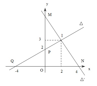 Cho $y = 0 \Rightarrow x = 4 \Rightarrow N(4; 0)$