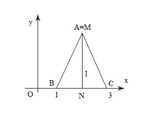 Với $x=8\Rightarrow M$$\equiv A$ và $N(2;0)$ là trung điểm của $BC$